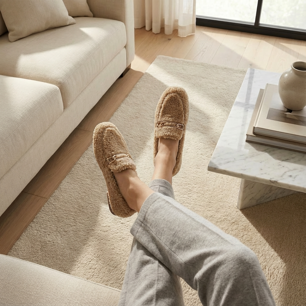Découvrez nos loafers d’hiver ultra-douces, conçues pour offrir une chaleur enveloppante et une élégance moderne au quotidien. Leur texture bouclée premium, associée au détail métallique raffiné, crée un look chic sans effort — idéal pour la maison comme pour vos sorties en ville.
